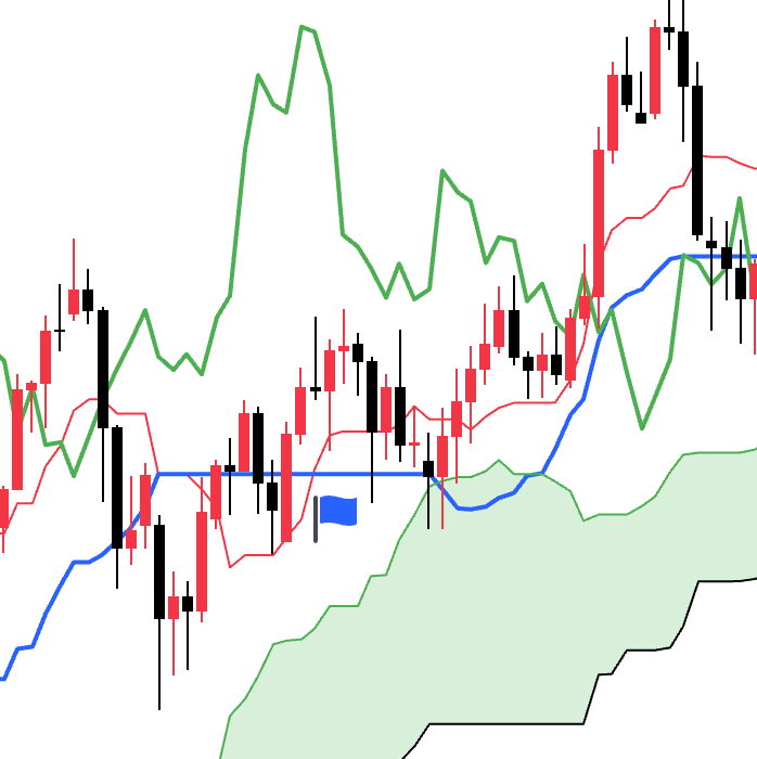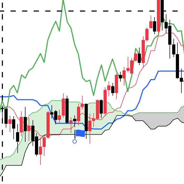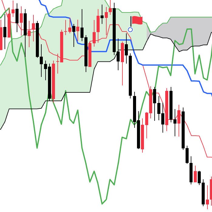 当先行线SpanA和先行线SpanB交叉的时候会出现看涨看跌信号。