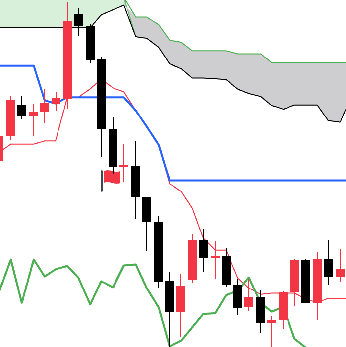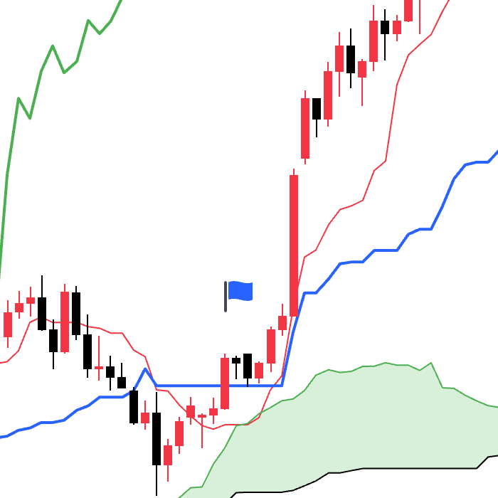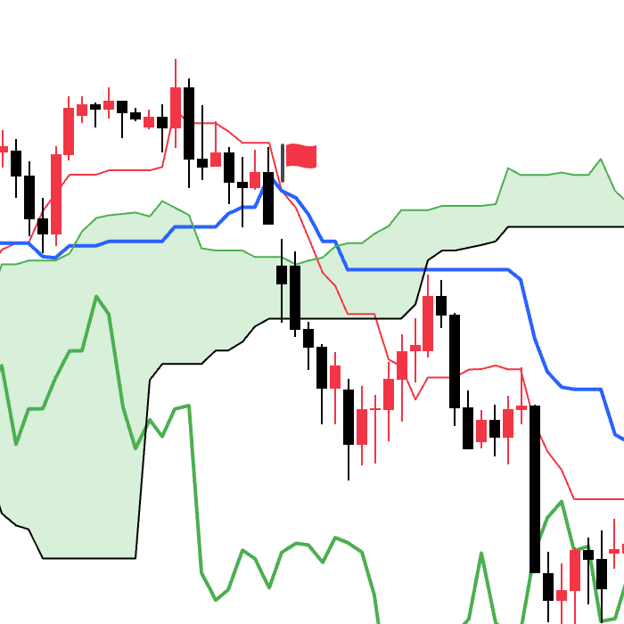 - 当价格上穿云层上限的时候为看涨信号