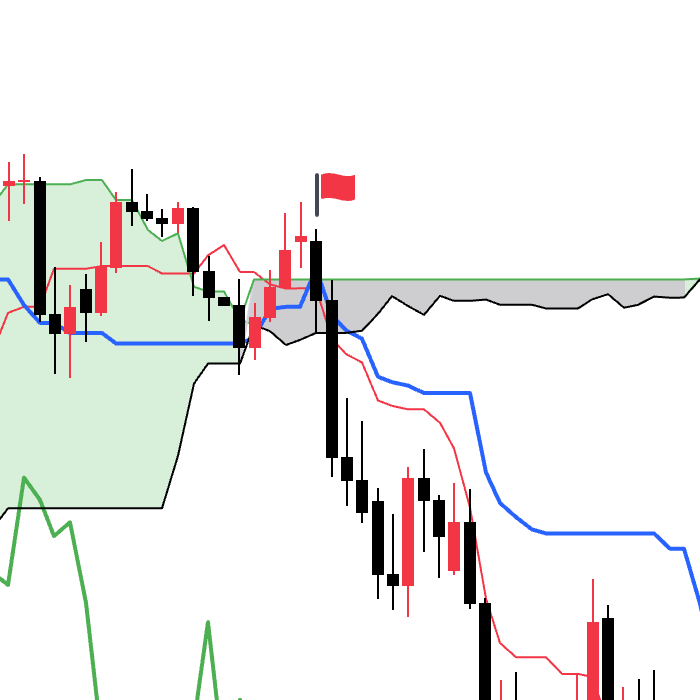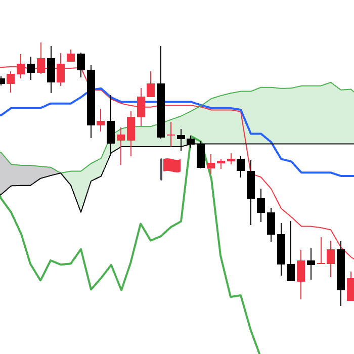 当先行线SpanA从上方下穿到先行线SpanB下方的时候会出现看跌信号。均衡表原著中称为阴转。