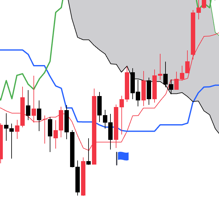 当先行线SpanA从下方上穿到先行线SpanB上方的时候会出现看涨信号。均衡表原著中称为阳转。