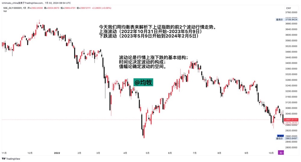 今天我们用均衡表来解析复盘上证指数的前2个波动行情走势。上涨波动(2022年10月31日开始-2023年5月9日)和下跌波动(2023年5月9日开始到2024年2月5日)。
