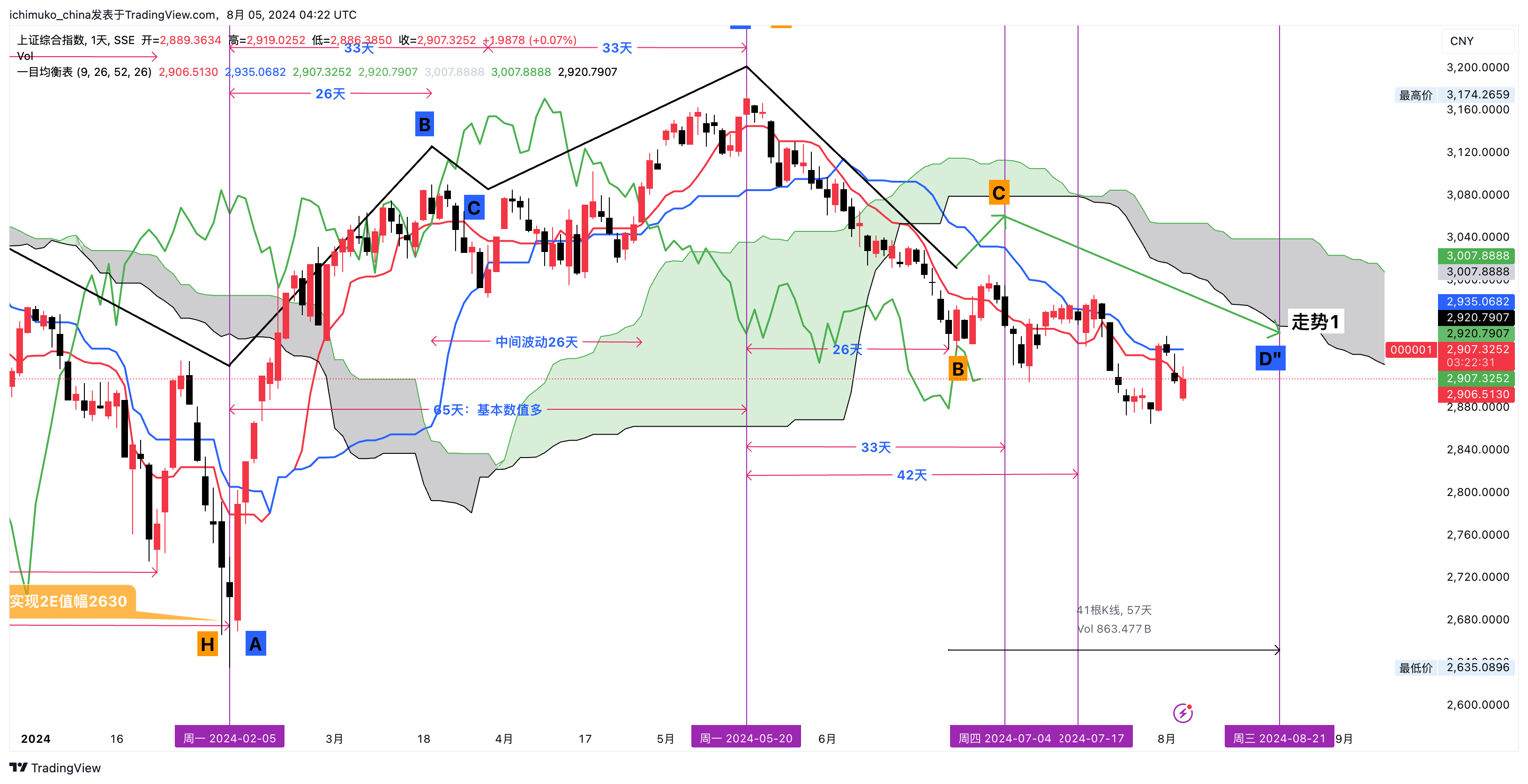 DE的回调波动持续了24天,距26的基本数值相差2天。同时和CD波动周期24天为对等数值。